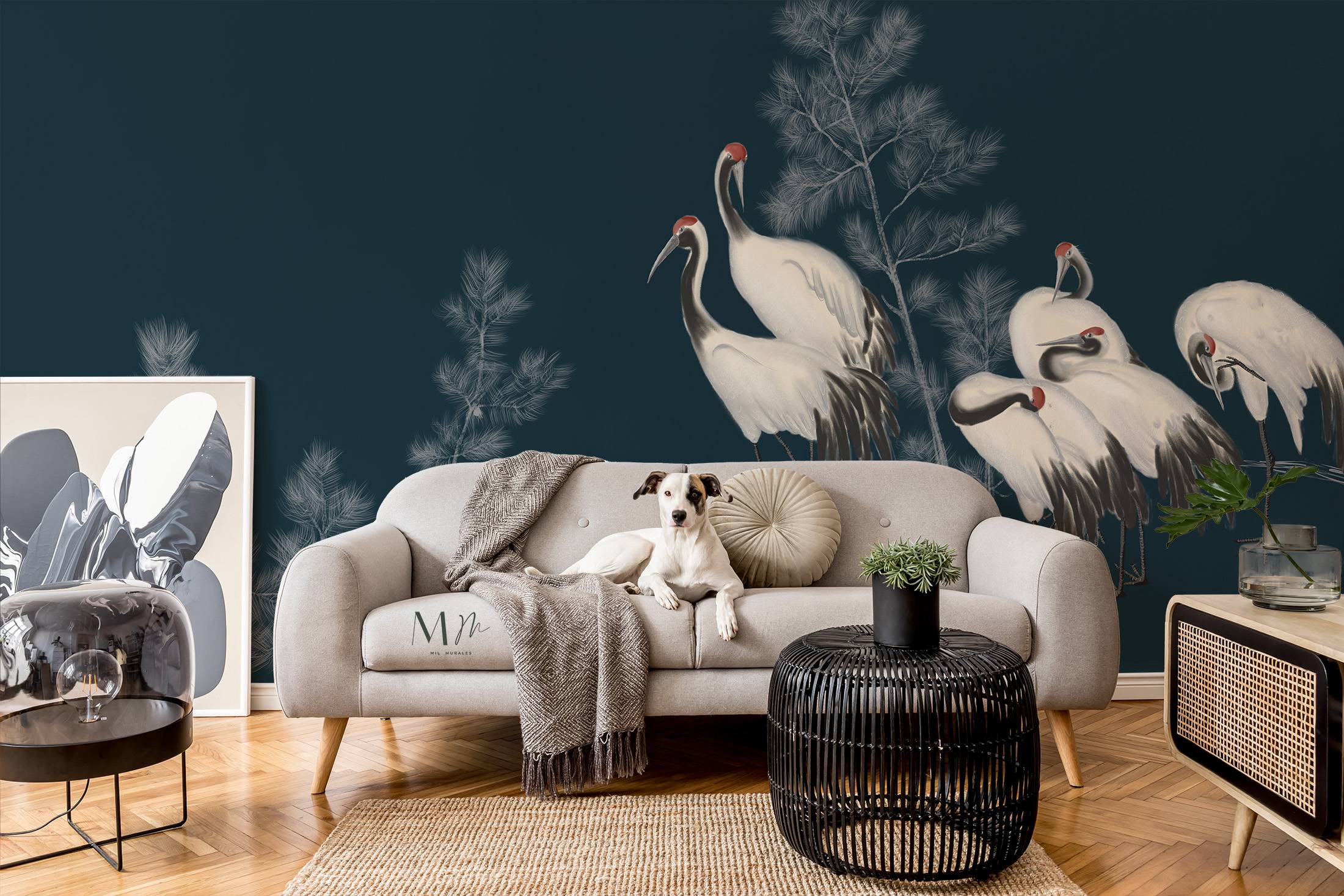 Grullas en fondo azul S/132 m2